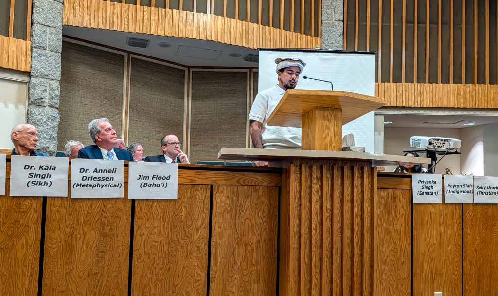 Speakers representing 8 different religons/belief systems will each deliver short presentations: Maulana Farhan Iqbal (Islam); Dr. Anneli Driessen (Metaphysical); Mr. Graham Sanderson (Christian LDS); Mr. Gurdeep Singh (Sikh); Ms. Gita Badiyan (Bahá’í); Fr. Allan Doerksen (Christian); Mr. Shrikant Shenwai (Hindu); and Rabbi Elisha Herb (Jewish).