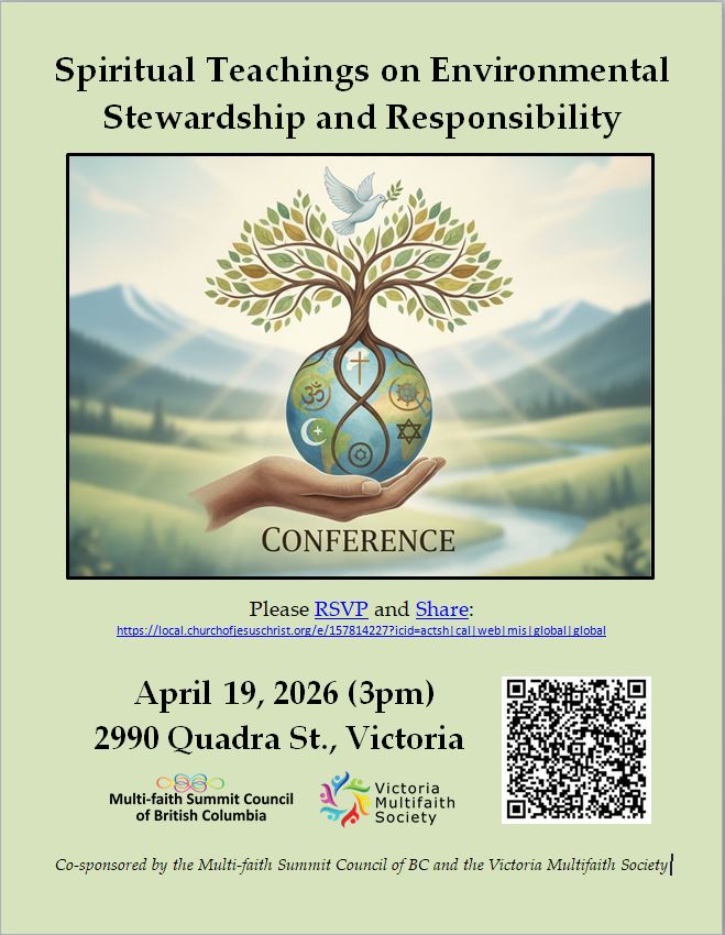 The presentations will be followed by an East Indian Dinner, generously provided by the Ahmadiyya community. The conference brings together a cross section of Victoria’s population to enjoy each other’s company and share conversation. We hope this theme will spark meaningful dialogue and highlight the shared values that can bridge divides across all of our diverse communities.